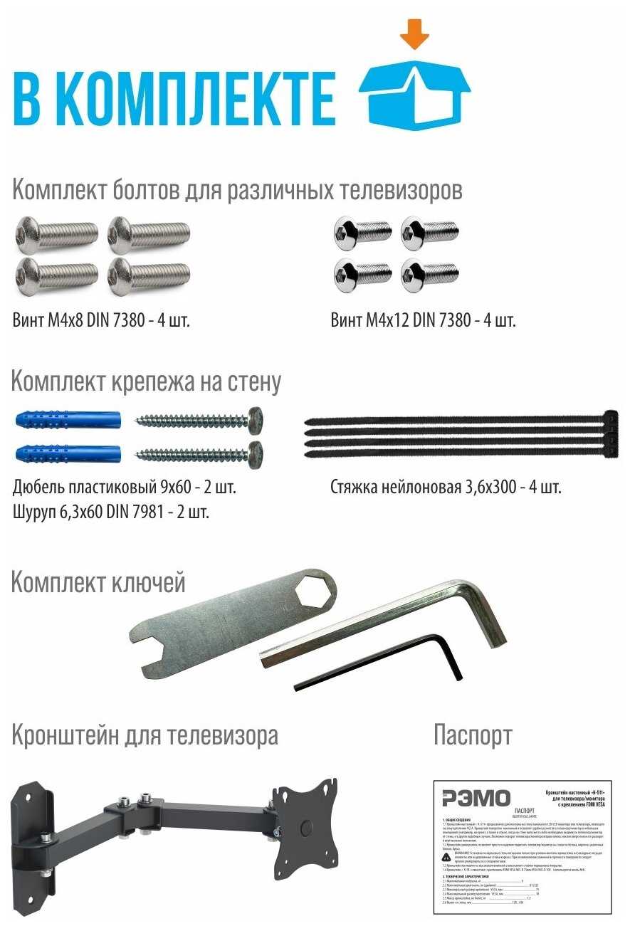 - Винты и болты из набора не всегда подходят к конкретным моделям (например, Samsung или VESA M6), приходится докупать.