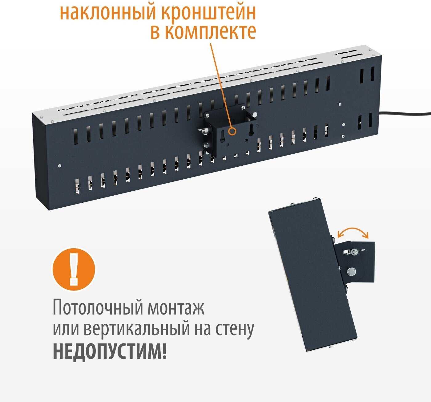 Покупала мужу в подарок для гаража. Мужчина остался доволен подарком, сказал, что это то, что нужно. Когда он что-то делает, то лампа направлена на него. Создается теплая зона для работы. Обычным обогревателем неотапливаемый гараж прогревать и прогревать, а инфракрасный нагревает предметы, на которые направлен. Идеальное решение. Для установки на стену приложен полный комплект - и кронштейны и крепеж! Бери и пользуйся. Всем рекомендую к покупке.