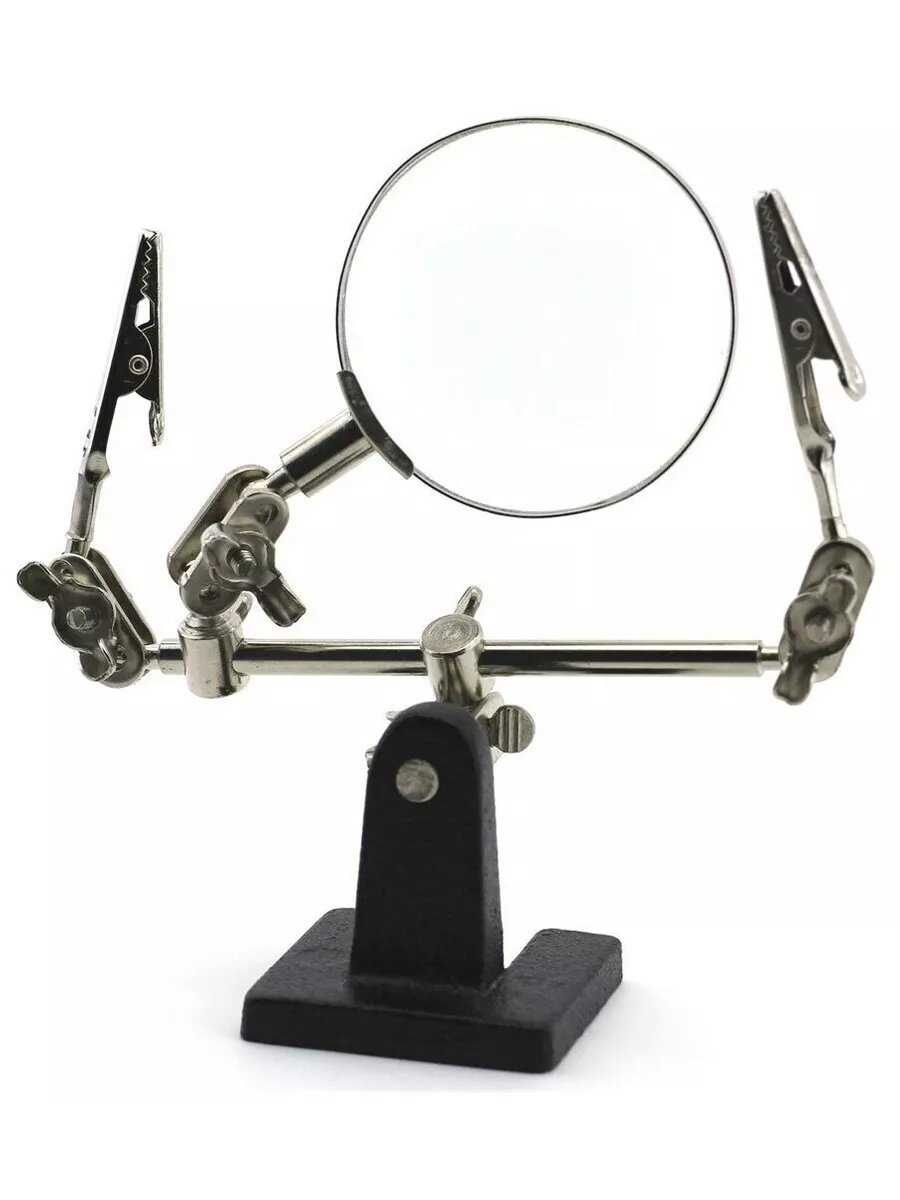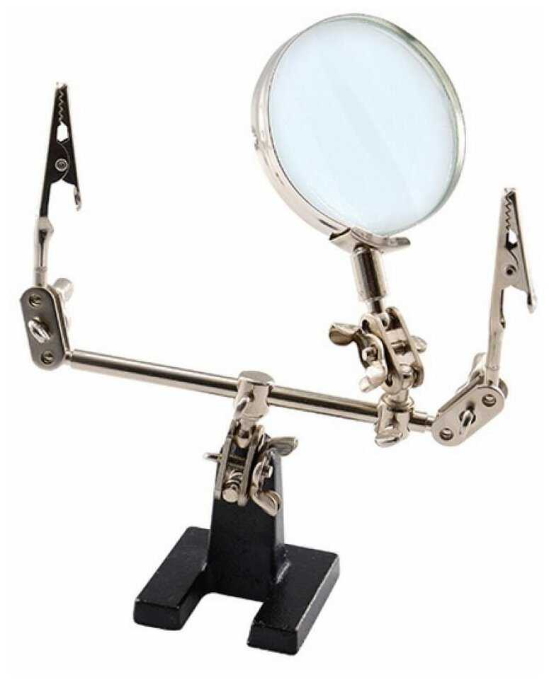 - + удобная приспособа для пайки, моделирования,лупа увеличивает как заявлено,"крокодилы" крепко держат.
