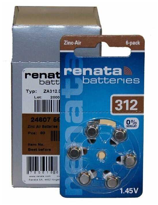 | Типоразмер : | 312 (PR41, ZA312, V312A, DA312), AA (R6, LR6, FR6, HR6, ZR6), SR66 (377, 376, SR626W, SR626SW, SB-AW, RW329) |