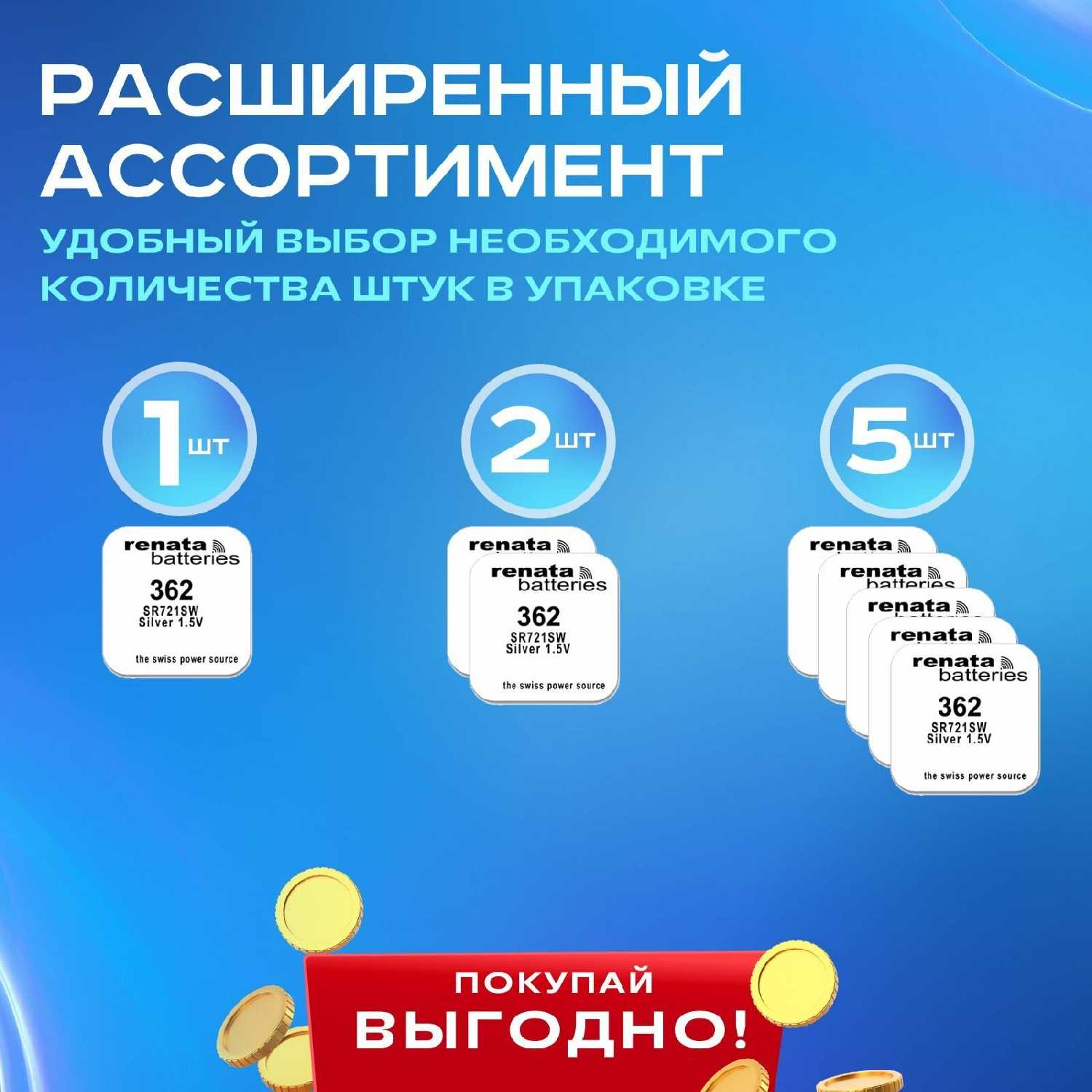 | Типоразмер : | 396, D, LR63 (LR521, AG0, G0), LR66 (LR626, AG4, G4), SR58, SR60, SR63 (379, SR521SW, RW327), SR66 (377, 376, SR626W, SR626SW, SB-AW, RW329), SR68 (373, SR916SW, RW317), SR69 (370, 371, SR920W, SR920SW, RW315, СЦ-0.03) |