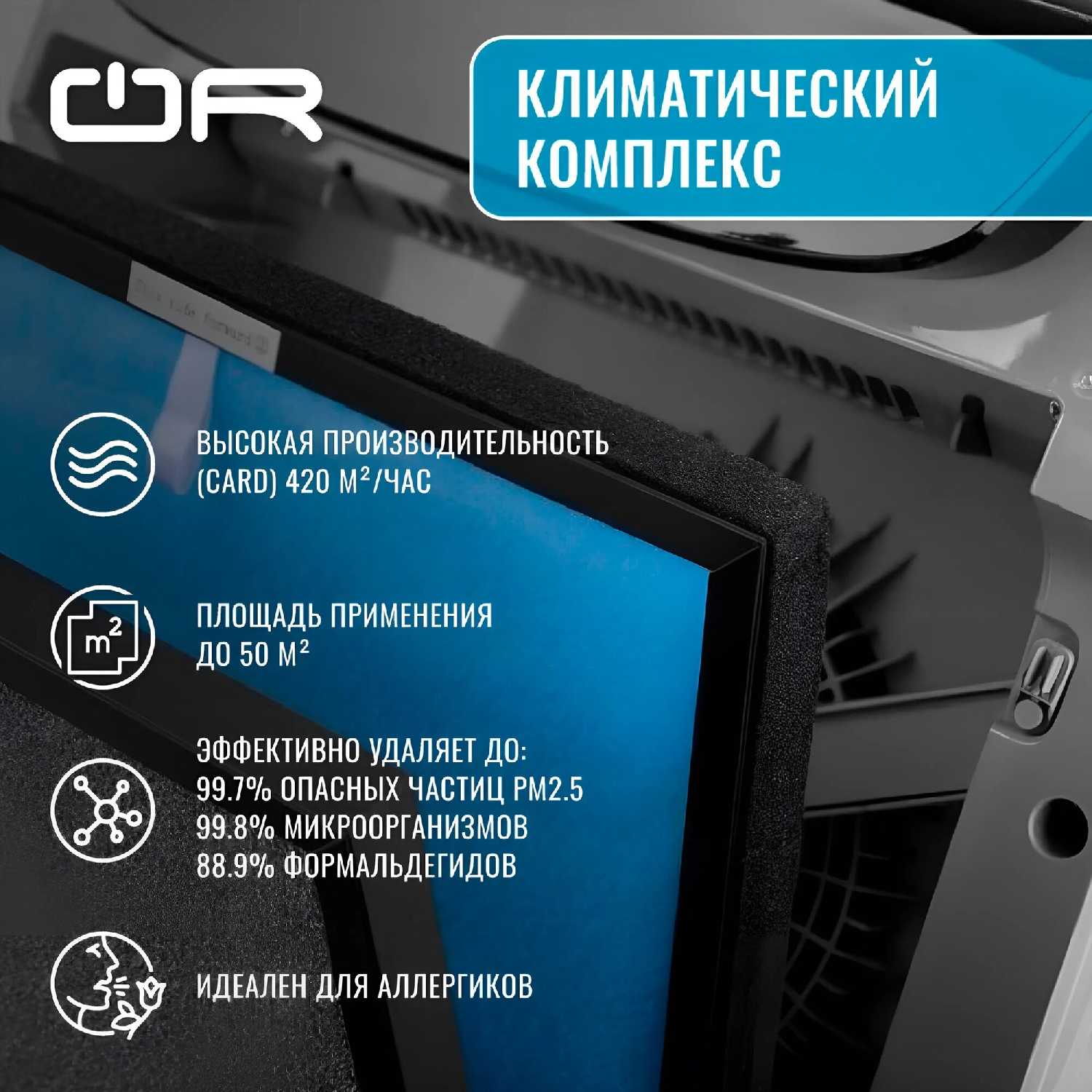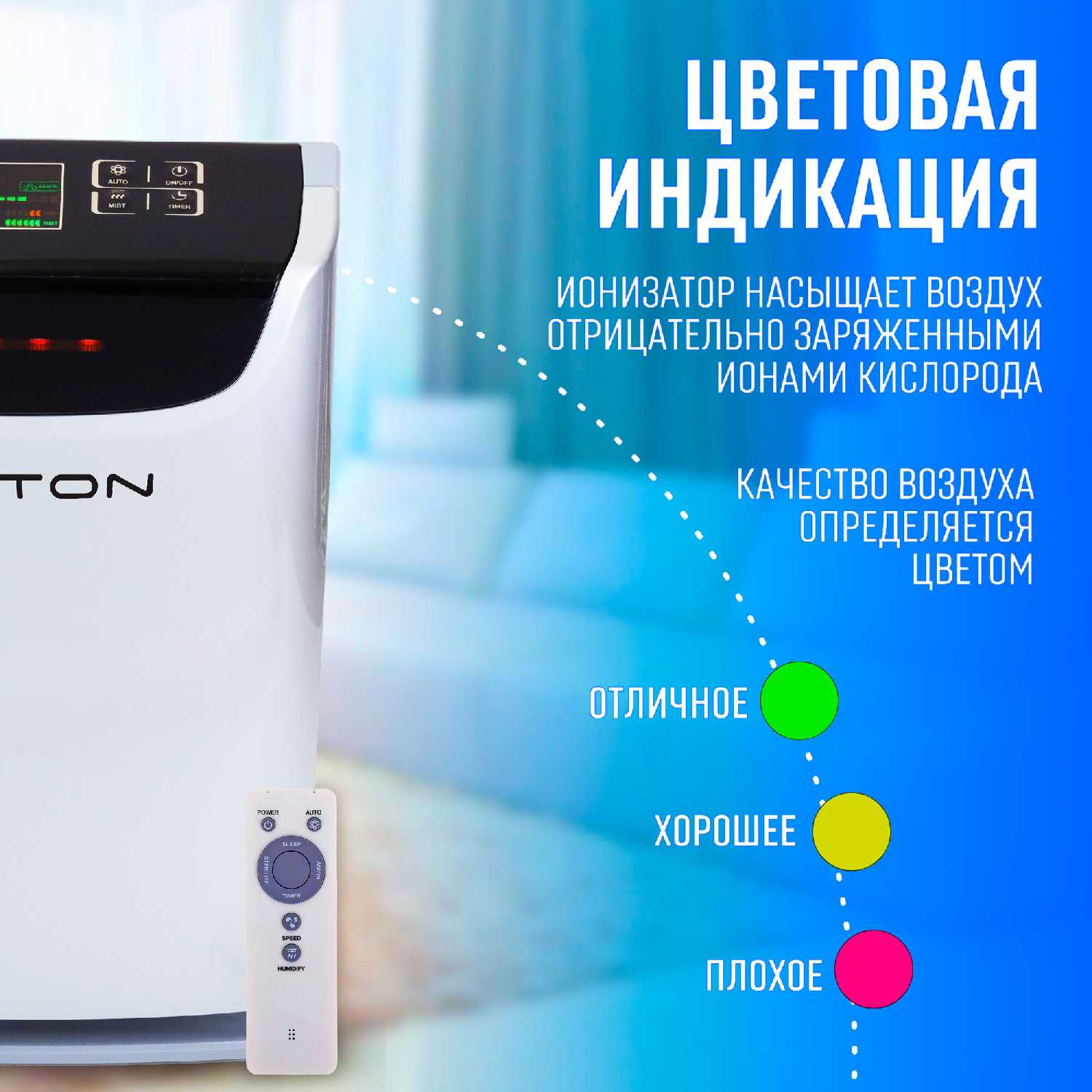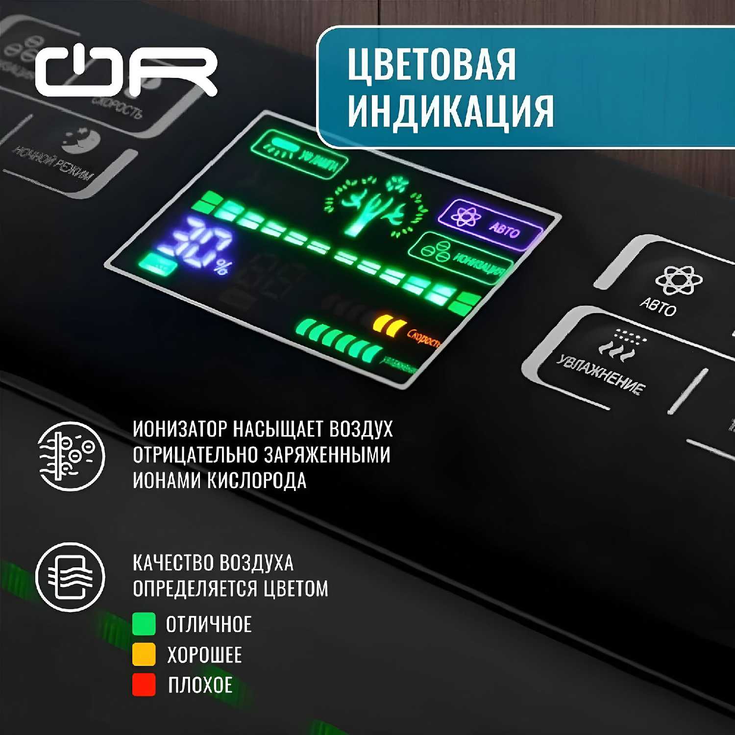 - Датчики влажности и качества воздуха автоматически корректируют работу прибора.