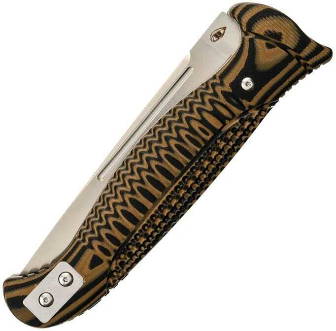 | Дополнительная информация : | Штифт замка заходит в вырез в пяте клинка и фиксирует клинок. Такой замок является разновидностью Axis-lock. |
