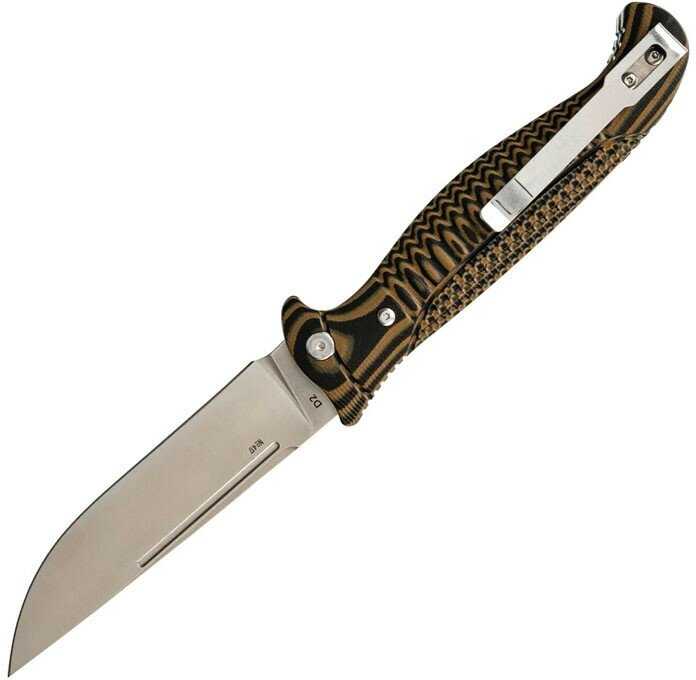 - + необычный, по удобный механизм открытия и закрытия, стандартный удобный дизайн и форм фактор нормальная сталь, но надо после работ протирать нож либо мыть и насухо вытирать, может немного ржаветь, но это д2, так что справедливо