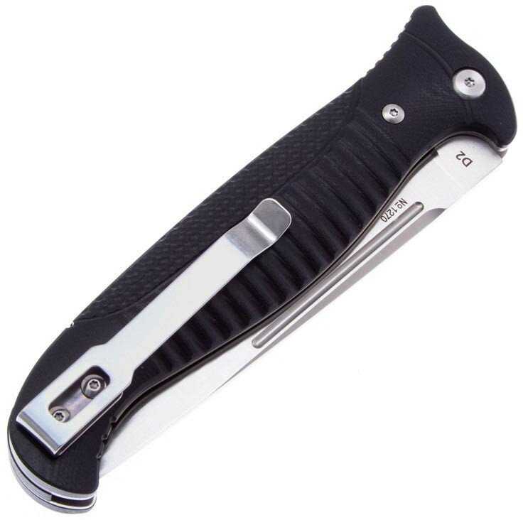 Дополнительная информация : | Штифт замка заходит в вырез в пяте клинка и фиксирует клинок. Такой замок является разновидностью Axis-lock. |