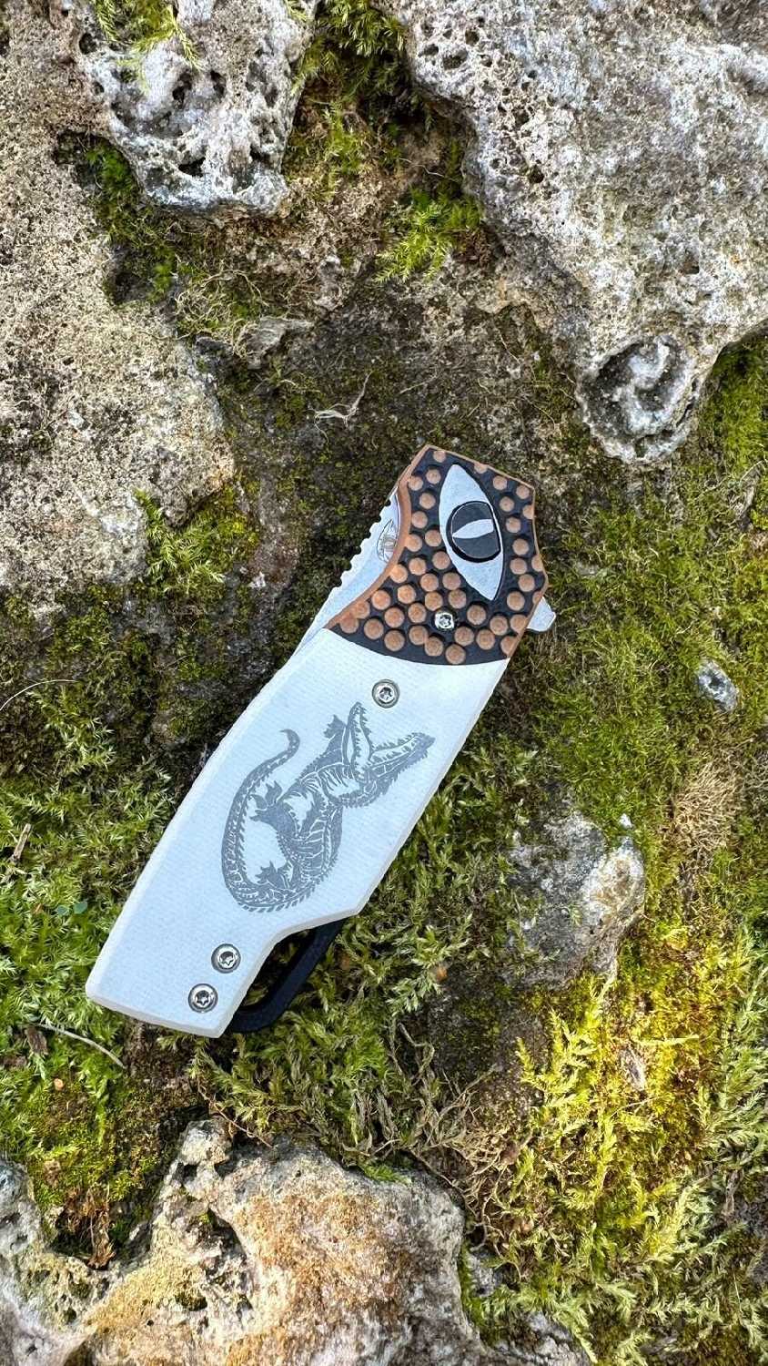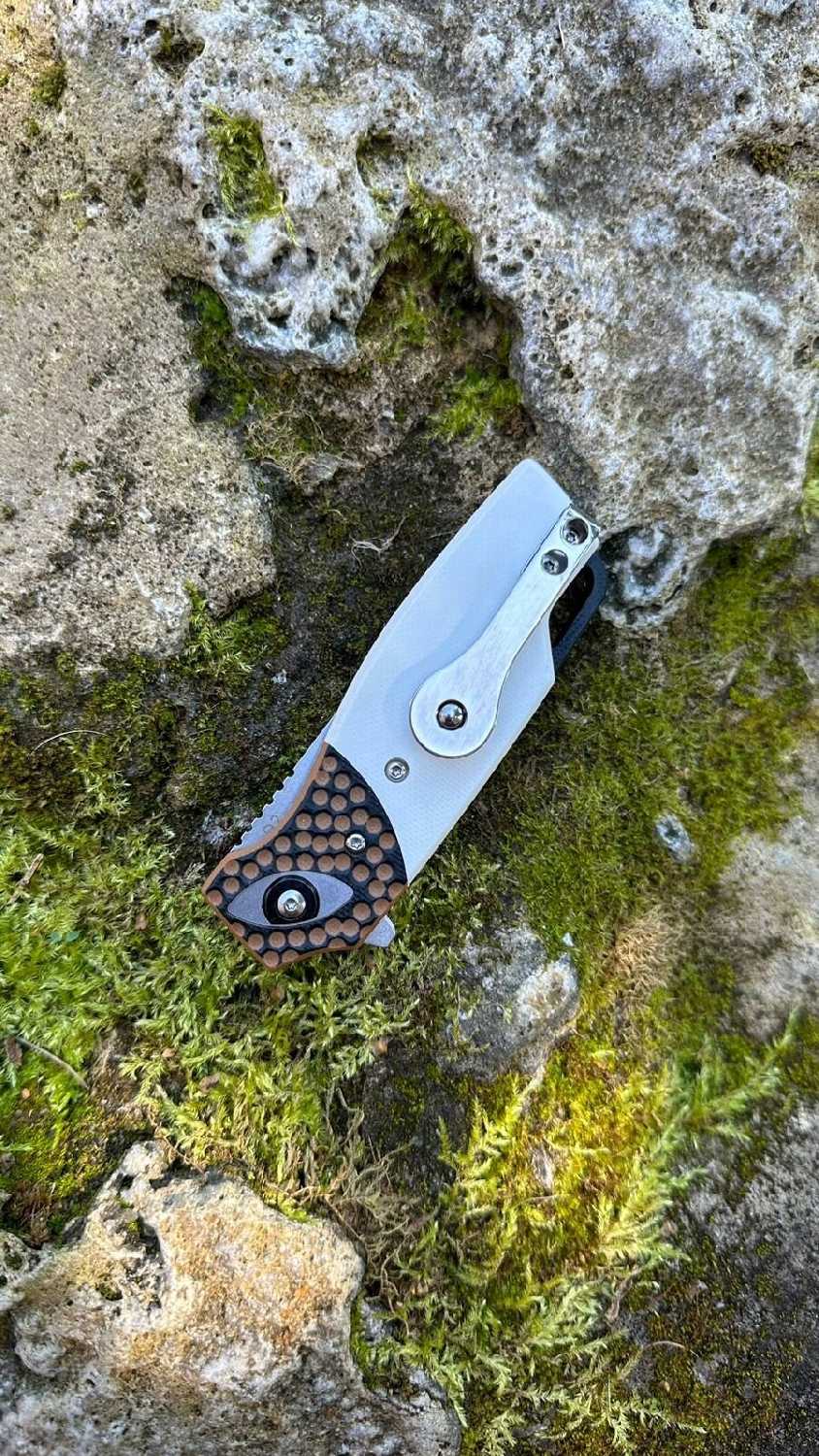 Красивый небольшой, но тяжелый для своего размера нож, с толстенным клинком.