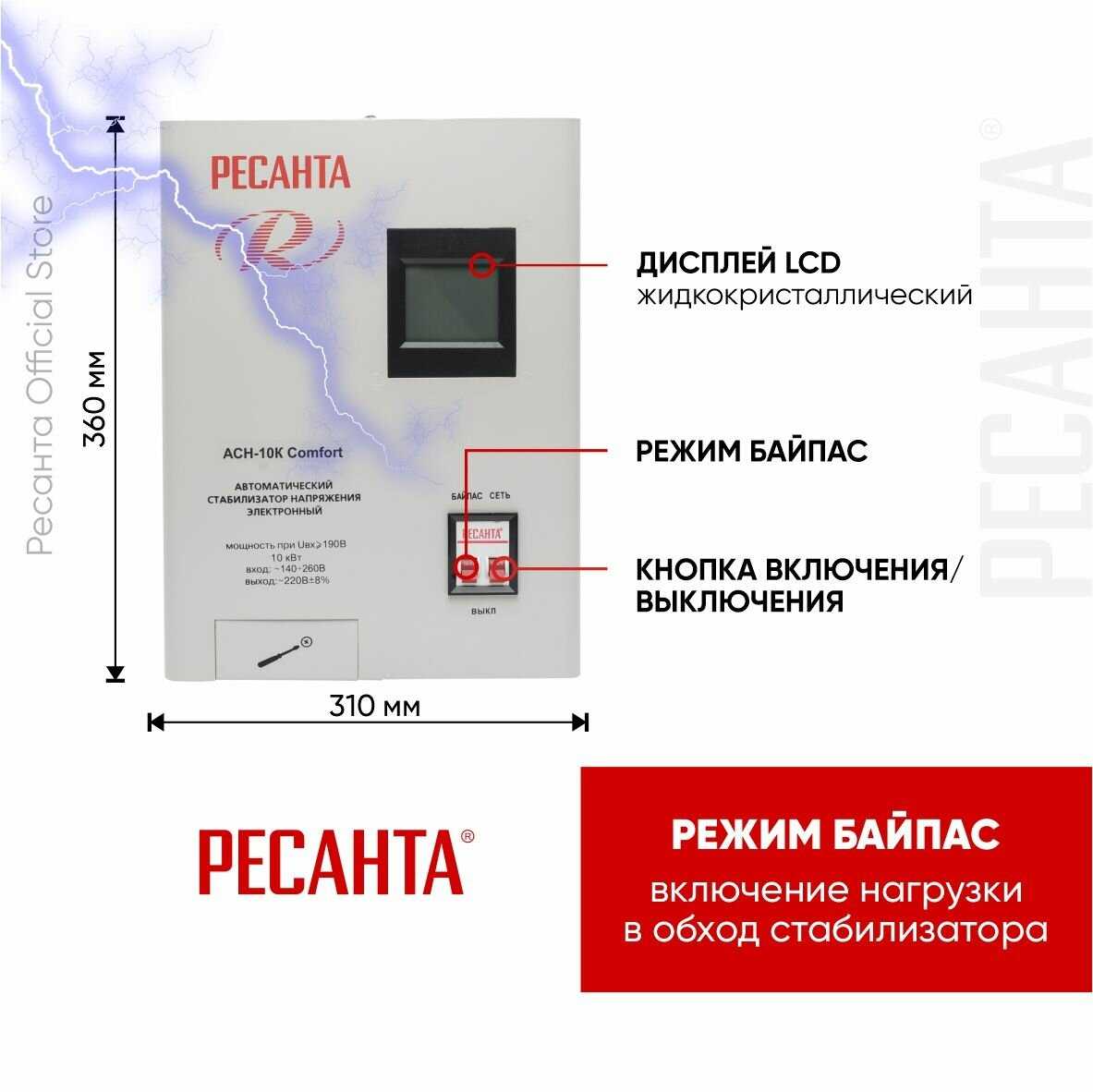 Отзывы о Стабилизатор напряжения Ресанта АСН-10К Comfort