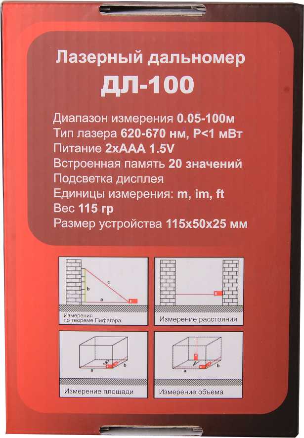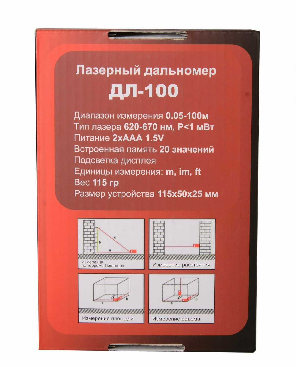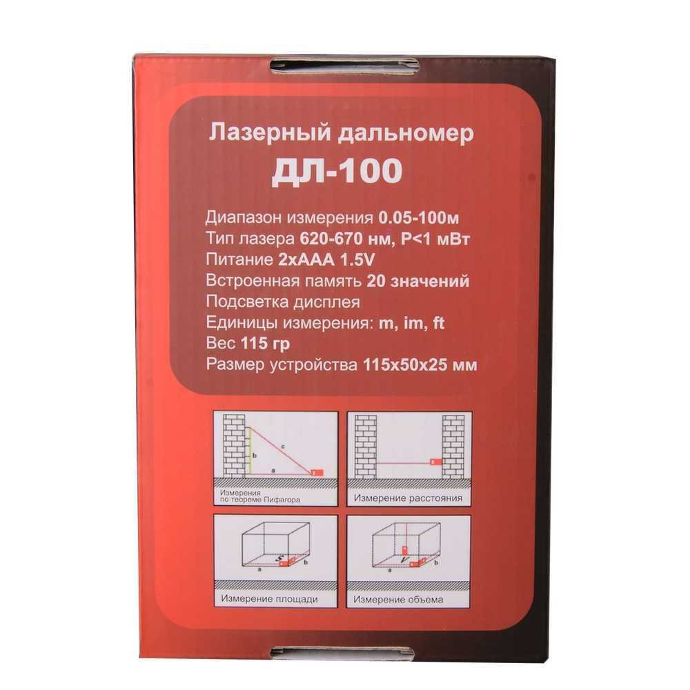 - дальность измерения (без отражателя): 100 м
