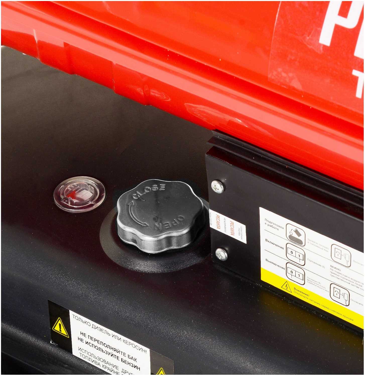 - + Хорошо справляется с обогревом большого гаража, прогревает всё минут за 20-30. Удобный терморегулятор - не надо постоянно следить за температурой. Экономно расходует топливо, несмотря на мощность. Работает достаточно тихо для такого типа оборудования.