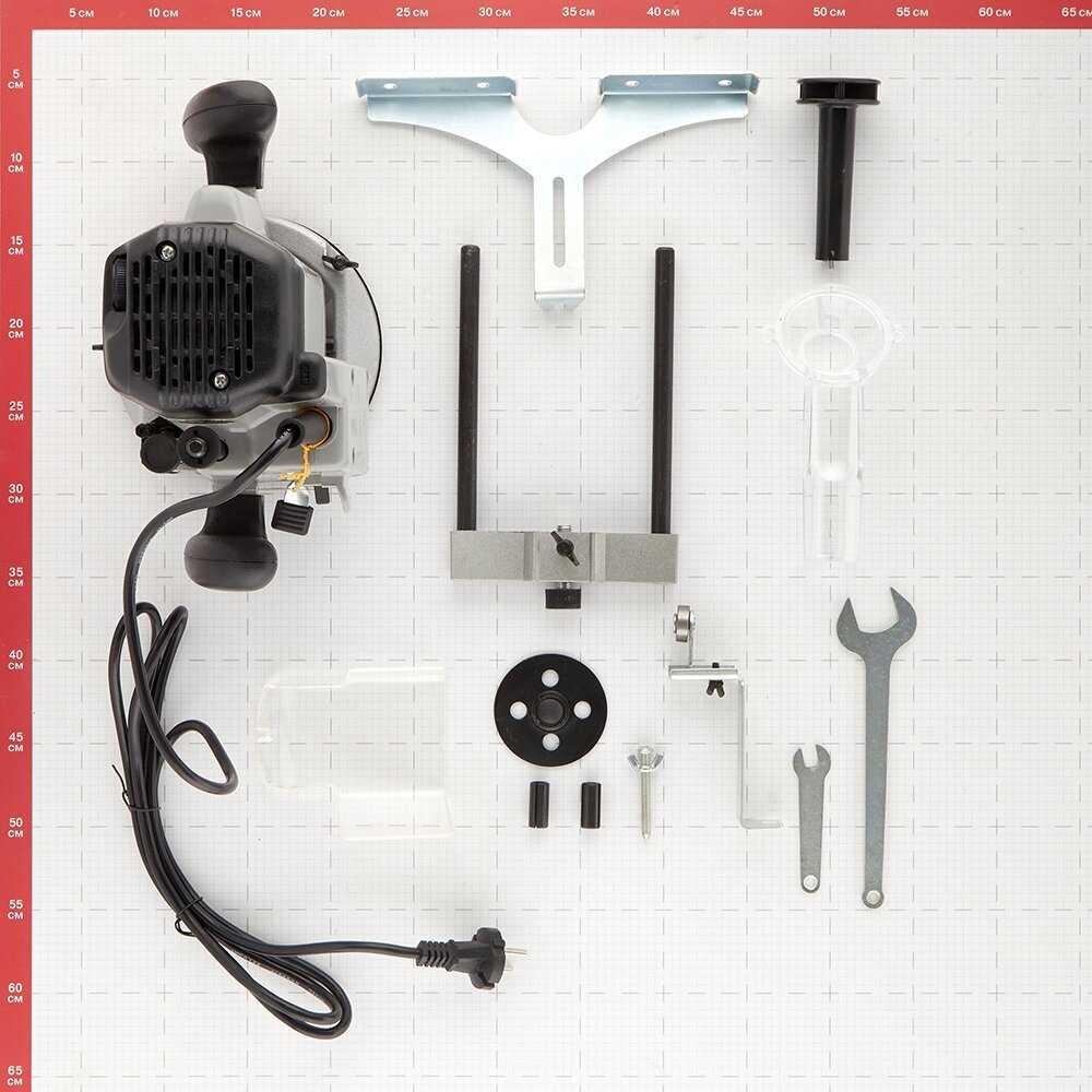 В комплект входят цанги на 6, 8 и 12 мм, что покрывает большинство задач для домашней мастерской. Отсутствие переходных втулок и специализированных фрез компенсируется доступностью расходников на рынке. Пылеотводный патрубок упрощает поддержание чистоты, но его эффективность зависит от мощности пылесоса. Параллельный упор и копировальная втулка расширяют функционал, однако их фиксация требует доработки: например, пользователи заменяют пластиковые гайки на металлические для большей надежности. Для установки в стол не хватает монтажной пластины — её приходится изготавливать самостоятельно или докупать отдельно.