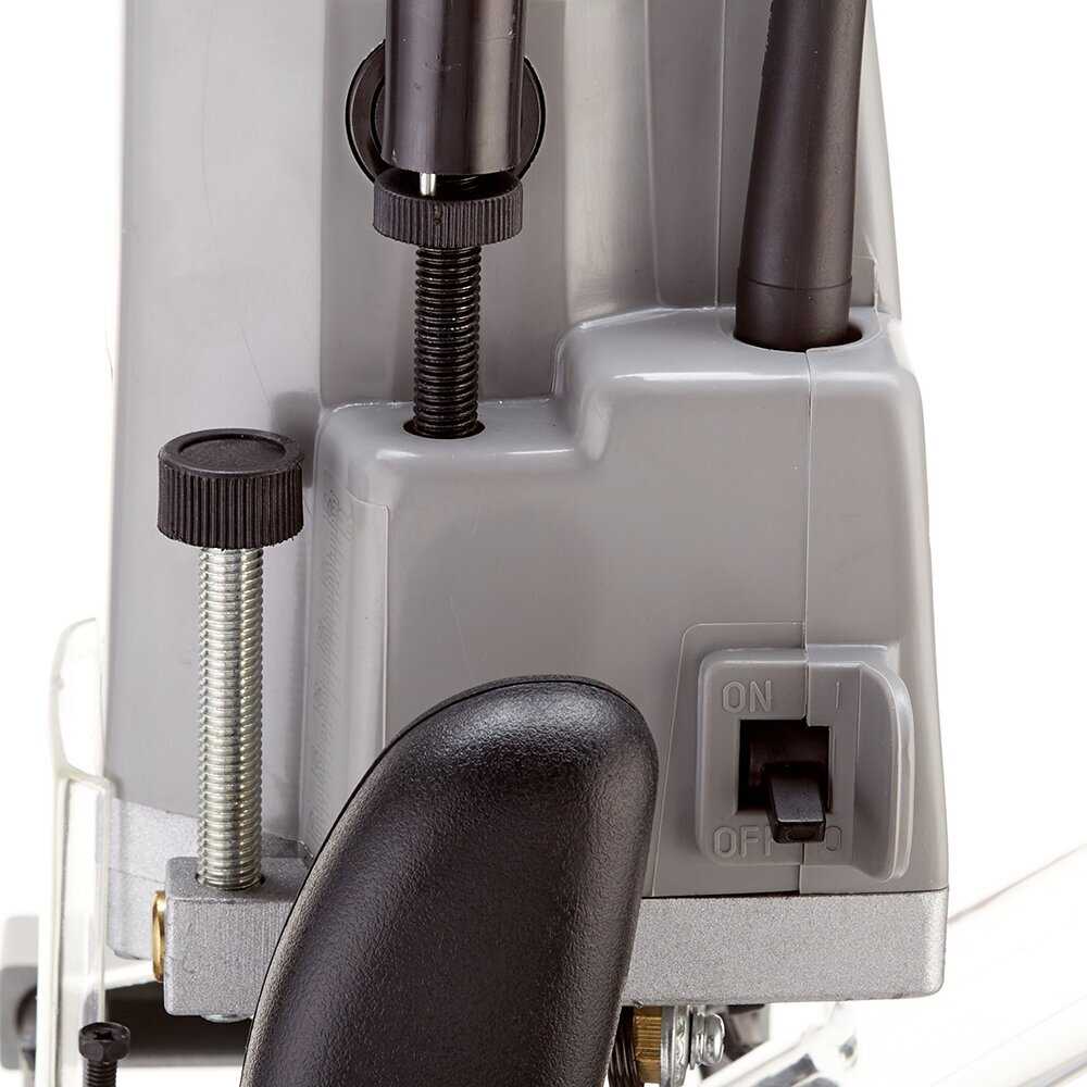- + Удобная система настройки глубины и скорости реза. Прорезиненные ручки и система блокировки шпинделя – полезные вещи при длительной работе.