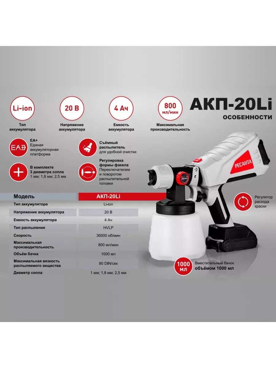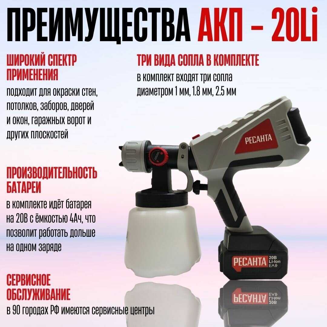 РЕСАНТА Краскопульт аккумуляторный (АКП-20Li)?