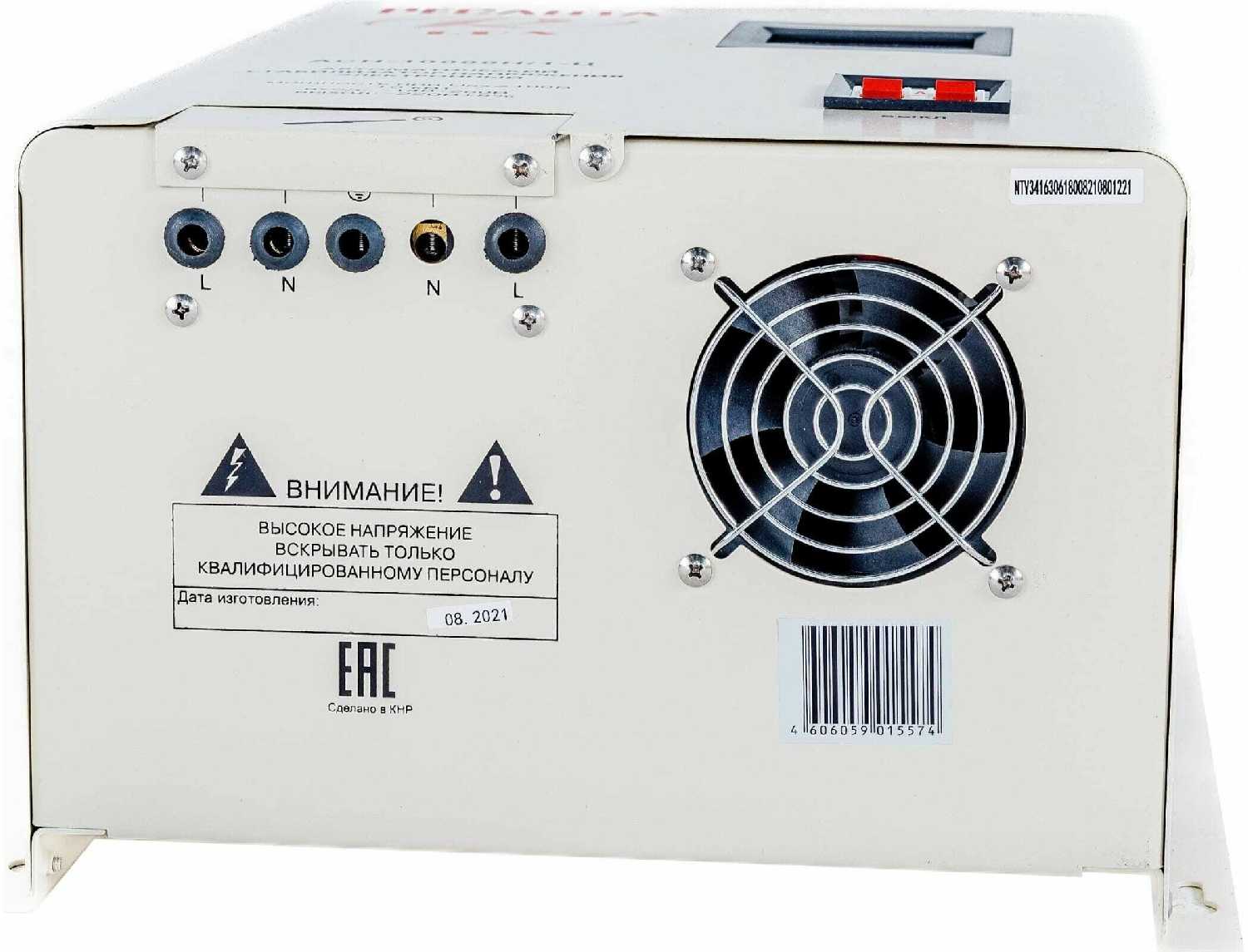 - + Быстрое реагирование на перепады напряжения. Микропроцессорная система управления с точной настройкой и моментальное восстановление напряжения - это для меня важно. Хорошо держит нагрузку, стабилизатор не выключается даже при коротких перегрузках.
