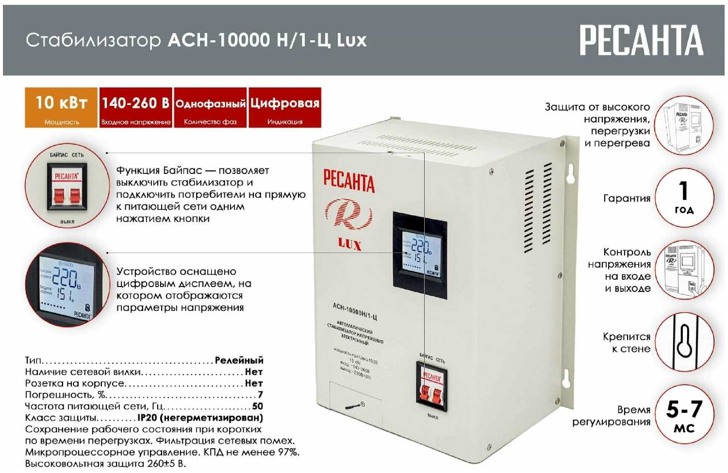 Отзывы о Стабилизатор напряжения РЕСАНТА LUX АСН-10000Н/1