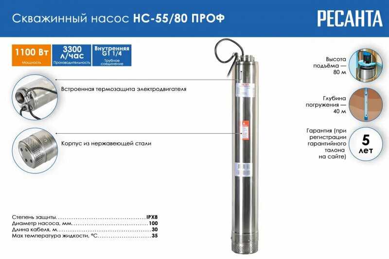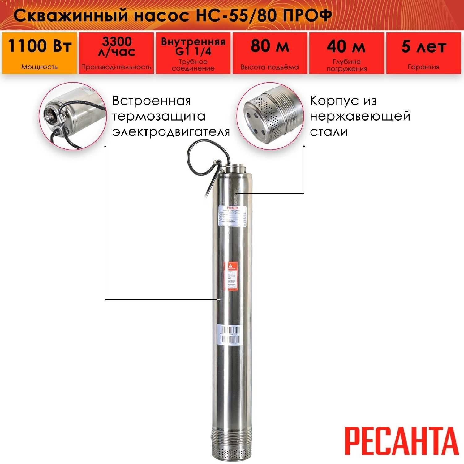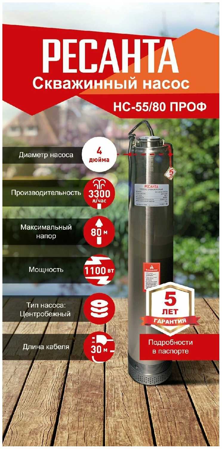 Отзывы о Скважинный насос Ресанта НС-55/80 ПРОФ