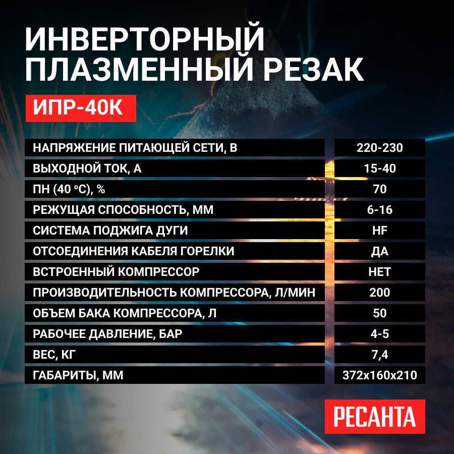 Обзор РЕСАНТА Плазменный резак ИПР-40К*: