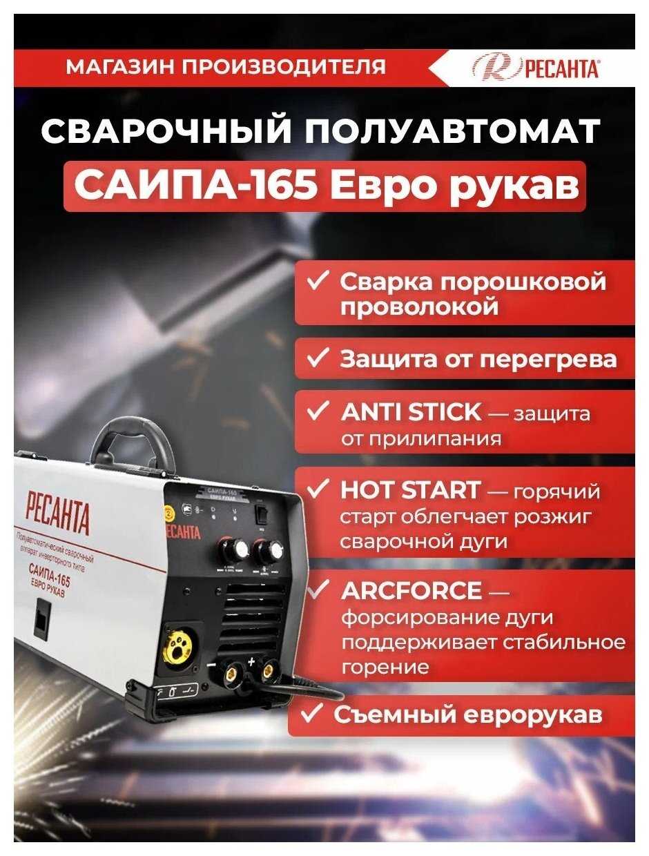 Отзывы о Сварочный аппарат инверторного типа РЕСАНТА САИПА-165 Евро рукав, MMA, MIG/MAG