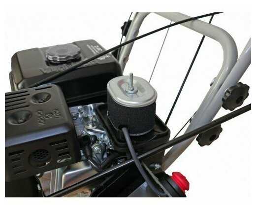 - Самоходная конструкция снижает нагрузку на пользователя при маневрировании на неровных участках.