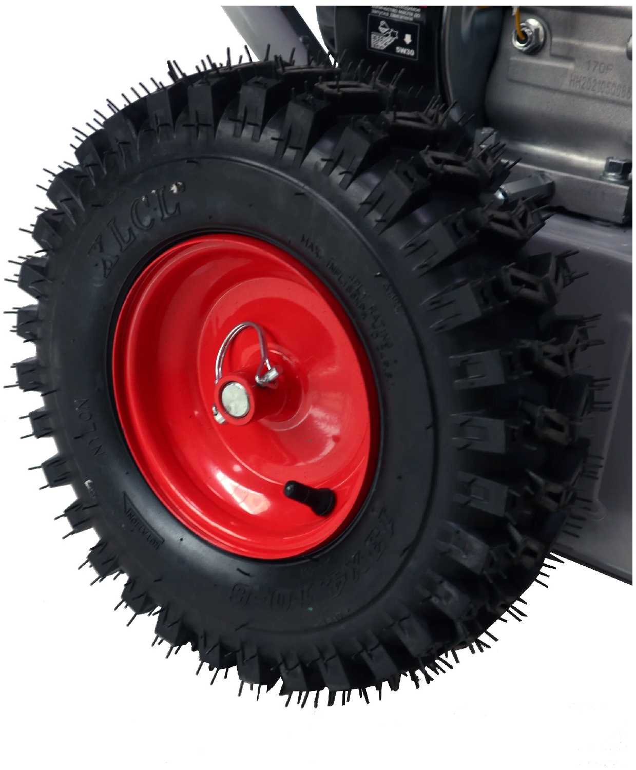- Надувные колеса с глубоким зимним протектором (аналогичные минитракторным) предотвращают пробуксовку на льду и в рыхлом снегу.