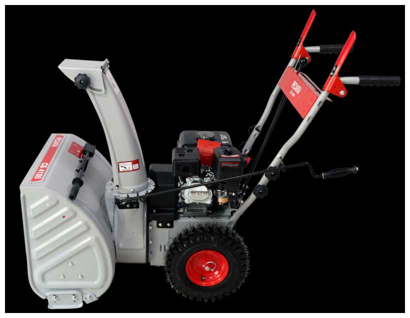 - Широкая зона захвата и регулируемый выброс снега: