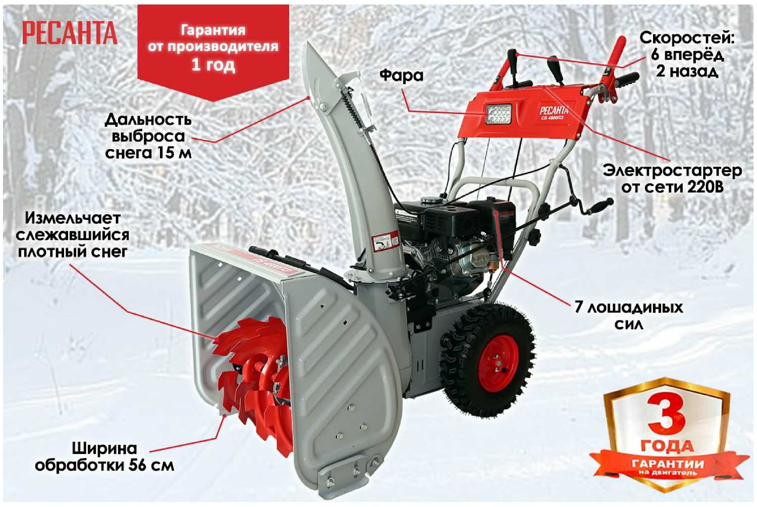 Отзывы о Снегоуборщик бензиновый РЕСАНТА СБ 4800ПЭ, 7 л.с.