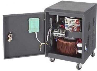 Купил в гараж, думал поможет, основная причина установки была в том что при запуске компрессора происходит падение напряжения до ~140В и отключается ПК, думал стабилизатор спасёт, но нет... ПК так же отключается т.к. медленное переключение, но после переключения при работе компрессора свет моргать перестал и вроде как сиабилизация присутствует, но... Падение напряжения всё таки есть, так же показания вольтметра на выходе показывает постоянно 220В по факту замерами мультиметром +/- 15В плавает, ну и спустя 6 дней просто пропало напряжение на выходе, индикация есть а напряжения нет, отдал по гарантии жду результата...