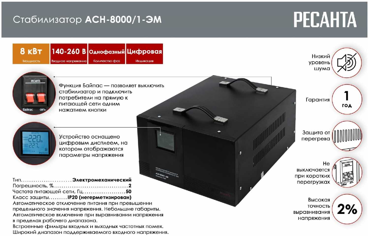 Отзывы о Стабилизатор напряжения РЕСАНТА ACH-8000/1-ЭМ