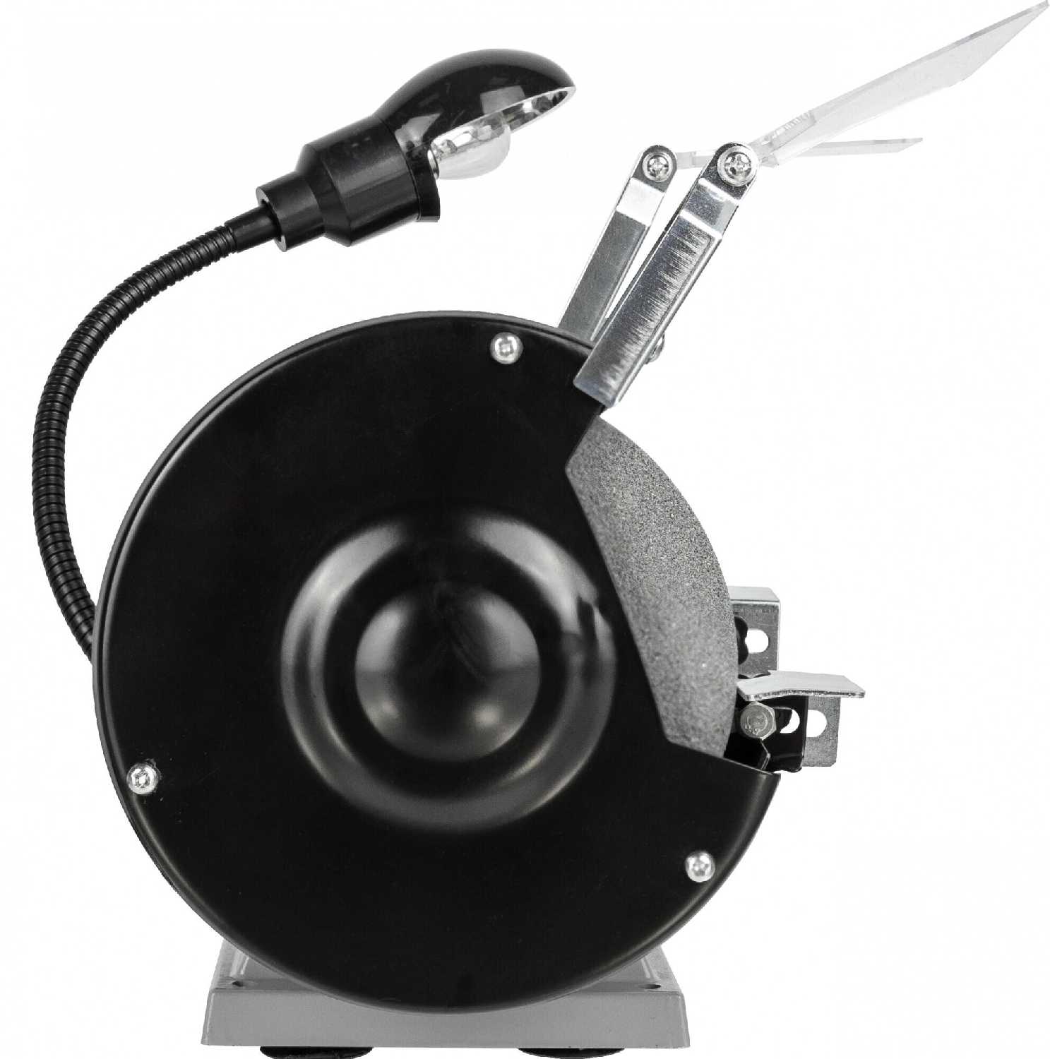 - + Металлический корпус и защита от искр обеспечивают безопасность.Удобное крепление к верстаку делает работу стабильной.