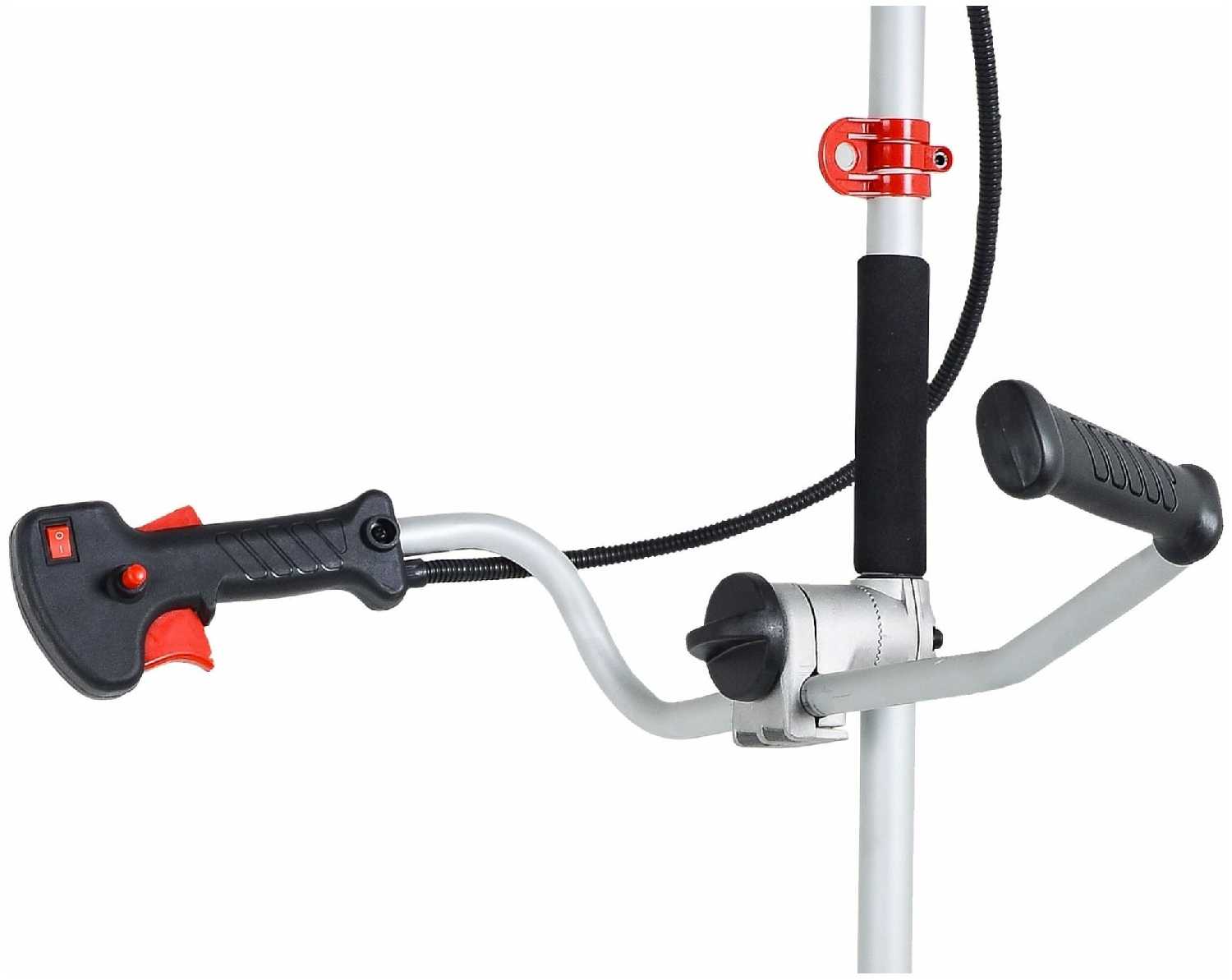 Крепление рукояток вызывает нарекания: алюминиевые зажимы часто разбалтываются при вибрации, а тонкостенные пластиковые ручки могут треснуть. В отзывах советуют сразу усиливать соединение резиновыми прокладками или заменять крепеж. Особенно это критично при весе аппарата 9 кг и работе на неровной местности. -