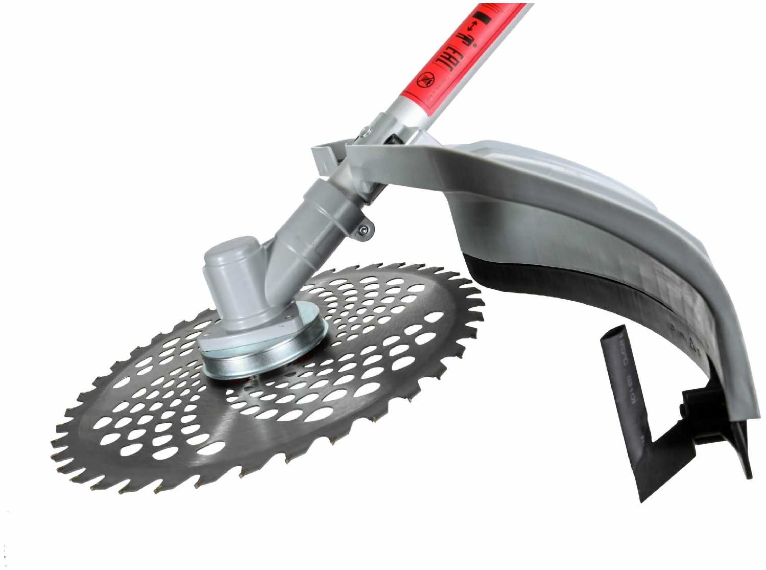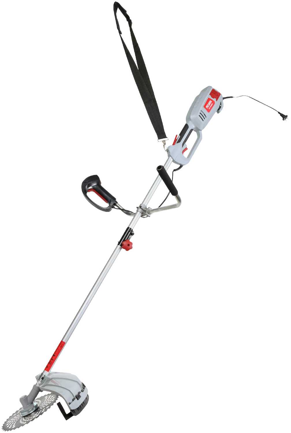 Комплектный нож (в т.ч. 40-зубный диск) уверенно срезает ветки толщиной 2-3 см, включая поросль вишни, сливы или лозу винограда. Мощности 1500 Вт достаточно для рубки кустарников, но при плотных стволиках требуется умеренное усилие. Важно избегать контакта с камнями — зубцы диска могут скалываться. -