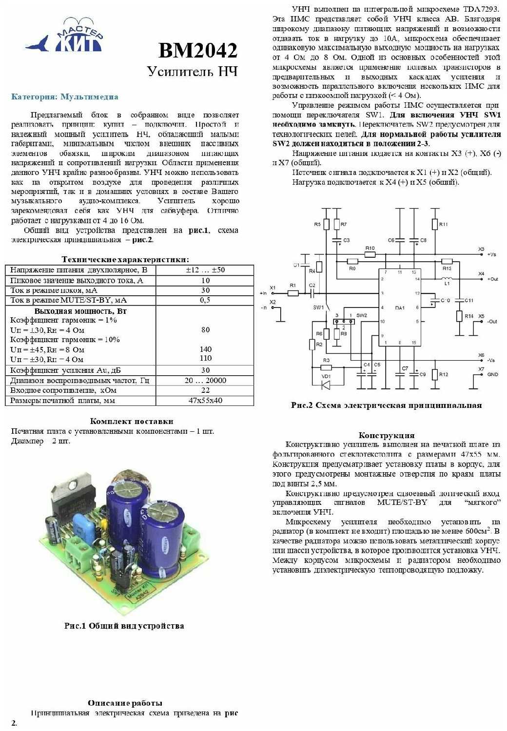Мастер Кит Усилитель НЧ 140 Вт (BМ2042)