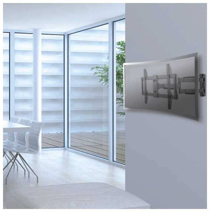 С точки зрения эргономики, продукт идеален для помещений с нестандартной планировкой. Возможность повернуть 55-дюймовый телевизор на 90° позволяет комфортно смотреть контент из кухни, обеденной зоны или рабочего кабинета без необходимости покупать дополнительные экраны. При этом важно учитывать габариты: в сложенном состоянии кронштейн добавляет всего 12 см к глубине ТВ, но при полном выдвижении "съедает" до 60 см пространства — это делает его не лучшим выбором для узких коридоров или комнат с проходной зоной у стены.