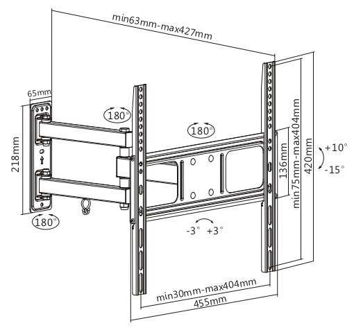 - Выдвижная конструкция с длинной "ногой" отодвигает ТВ от стены для обслуживания, сохраняя прижатое положение в покое.
