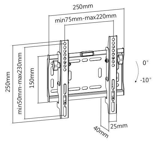 - Позволяет слегка наклонить телевизор на 5-10 градусов для оптимального просмотра, особенно если ТВ висит высоко (удобно для дивана или кровати).