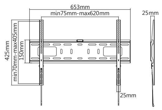- Легко вешать модели 55–75 дюймов (Samsung, LG, Sony), захваты на ощупь фиксируют надежно.
