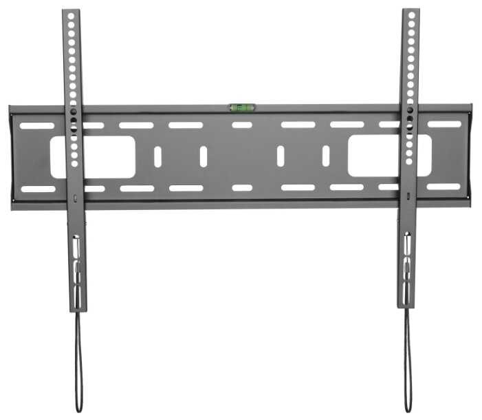 - + Идеально держит ТВ 55дюймов. Плотное прилегание к стене. Продуманная система защелок, не дающих упасть ТВ. Крепёж в комплекте.