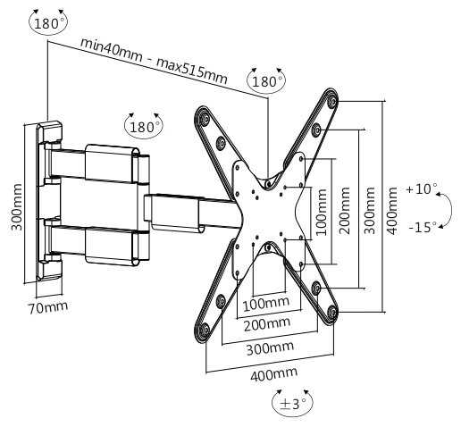 | Регулировка : | наклон, наклон и поворот, отступ от стены, поворот |