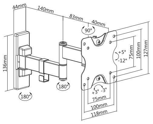 - Универсальность для VESA 75 и 100, подходит для мониторов и телевизоров разных брендов.