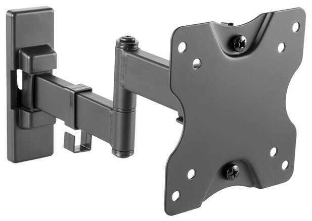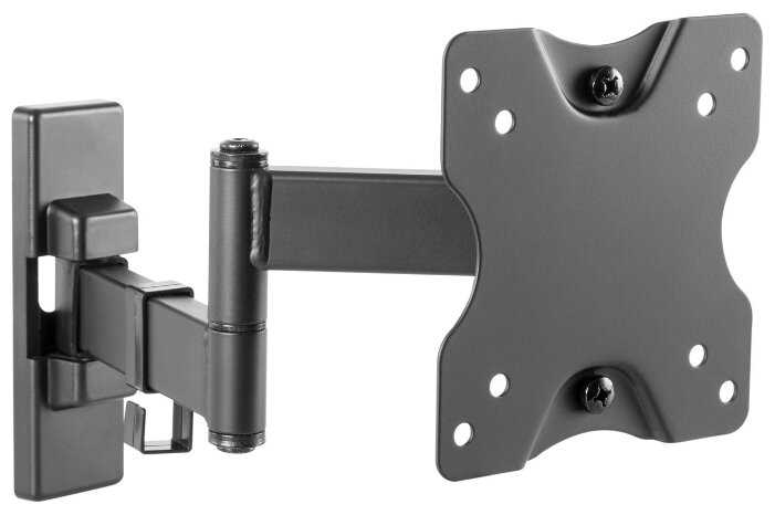 Кронштейн крепкий, повесил 24" ТВ - все очень надежно Поворотная лапка дала возможность повесить ТВ в нужном месте, под нужными углами (есть также возможность небольшого изменения угла по вертикали). При этом люфт при выдвижении лапки отсутствует, а самого кронштейна за телевизором даже и не видно совсем. Рекомендую!