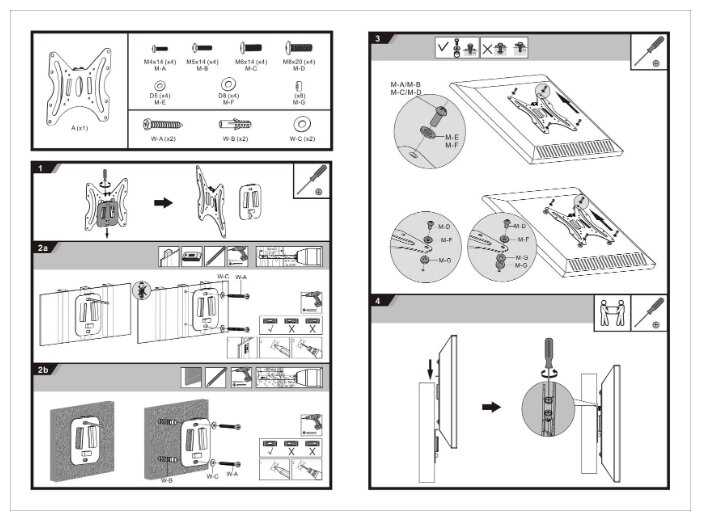 - Винты могут быть слишком короткими для некоторых ТВ (например, Samsung UE32T4510AU), требуя докупки M6 или длиннее.