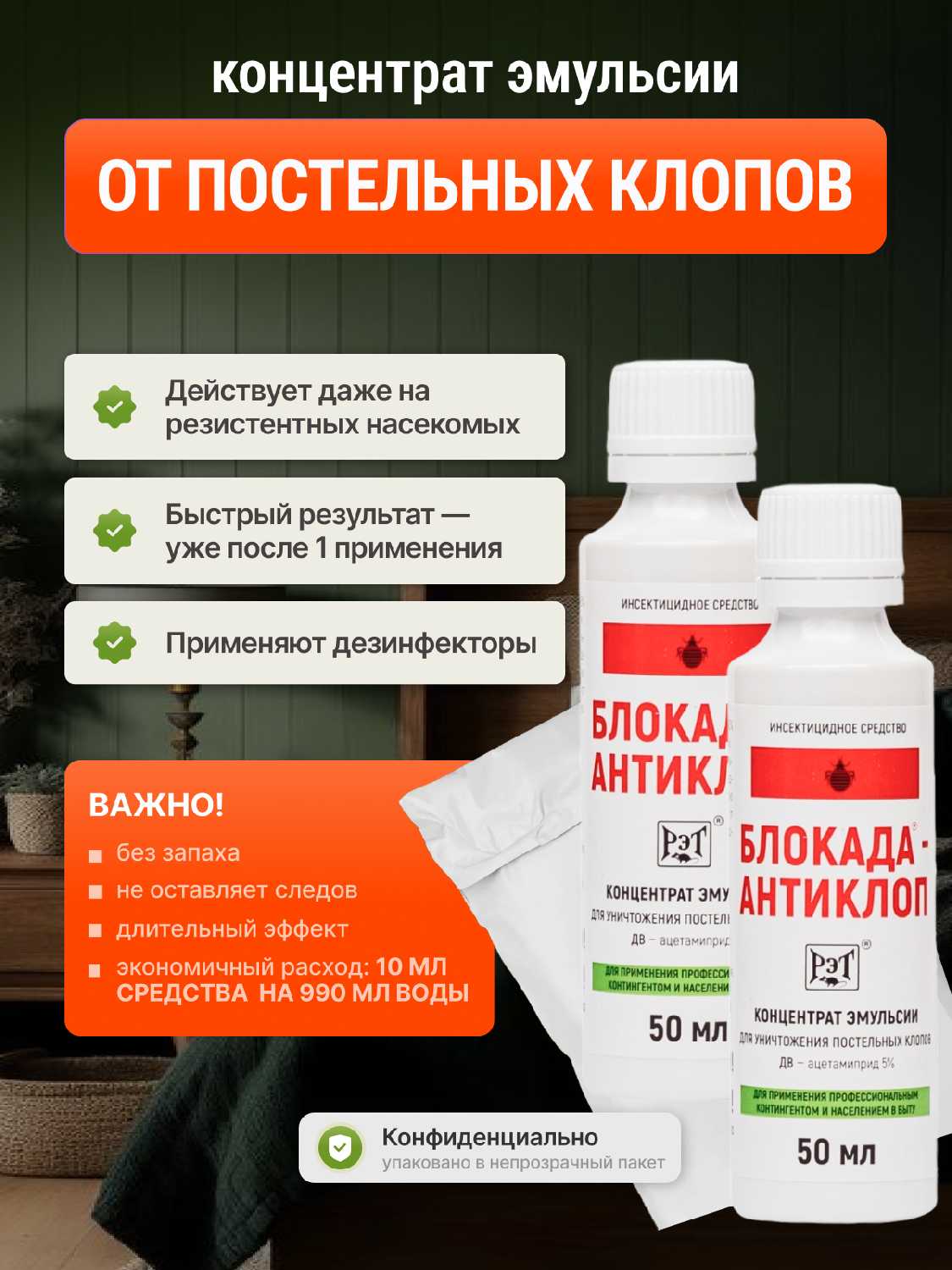 | Подробная комплектация : | Средство от клопов - блокада антиклоп 1 литр |