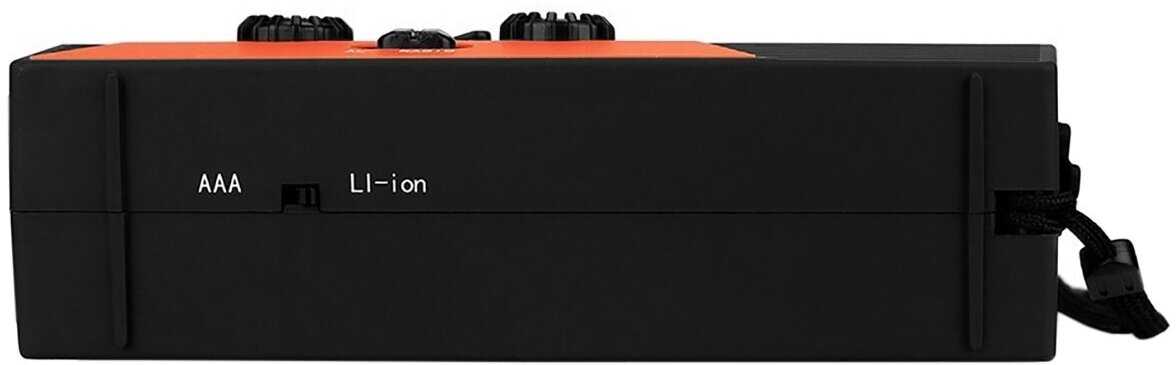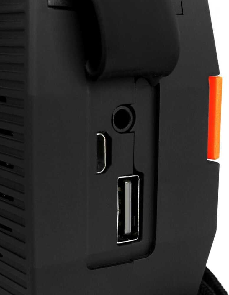 - + Работает. Есть возможность работы как от батареек так и от встроенного аккумулятора (за это отвечает переключатель).  Компактный.  Материал корпуса тактильно приятный не скользкий. Достаточно громкий. Есть возможность заряжать телефон и другие устройства.