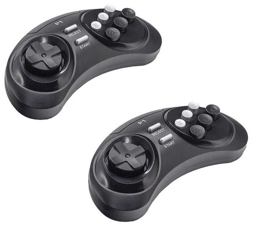- Контроллеры обеспечивают комфортный хват благодаря форме, повторяющей оригинальные геймпады Sega.