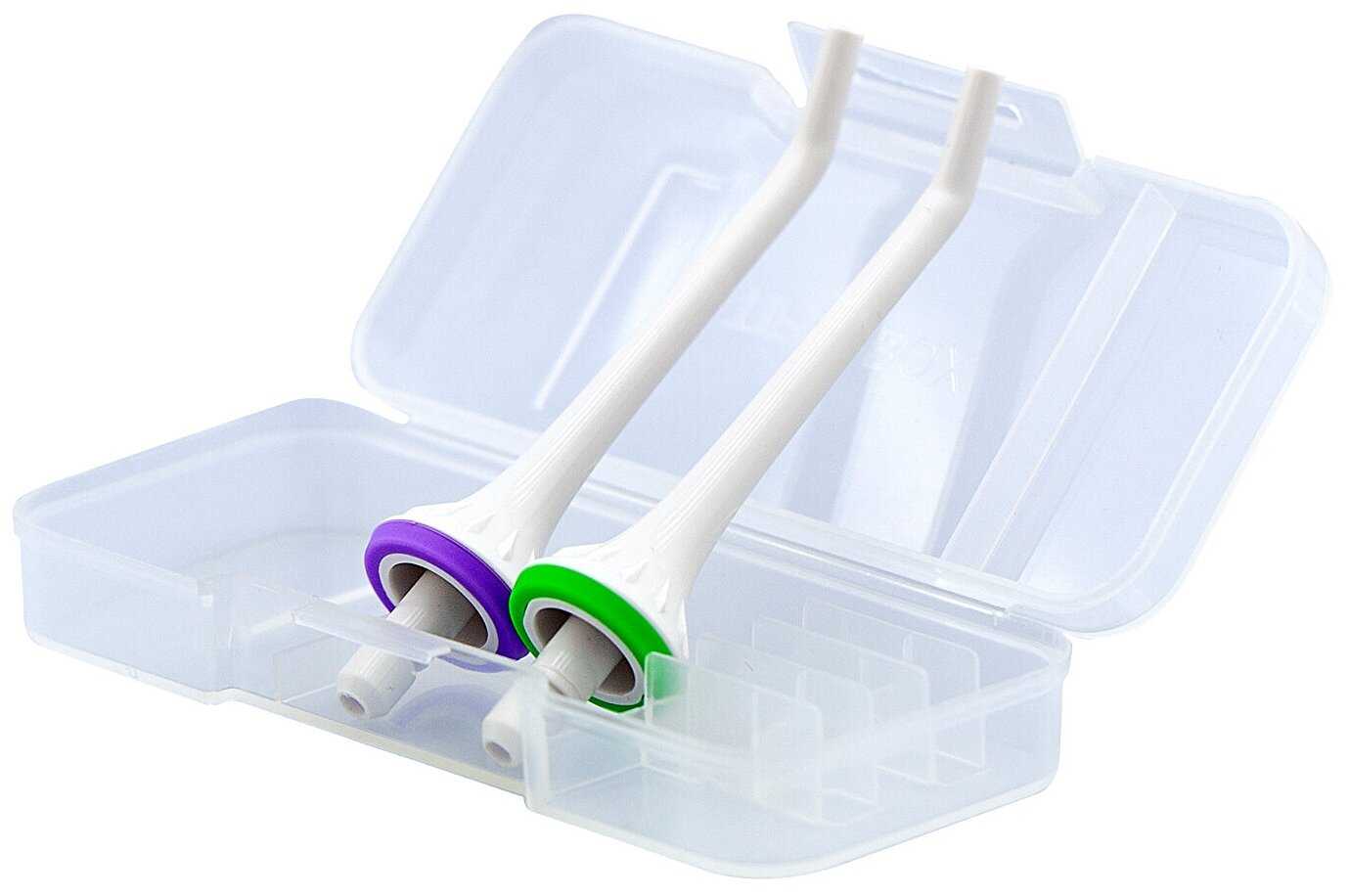 Протекают в месте стыковки с ирригатором. Очень хрупкие. Одну задел неаккуратно и она отломилась. Вторая сама развалилась через 2 дня. Итог: выбросил деньги в мусор.