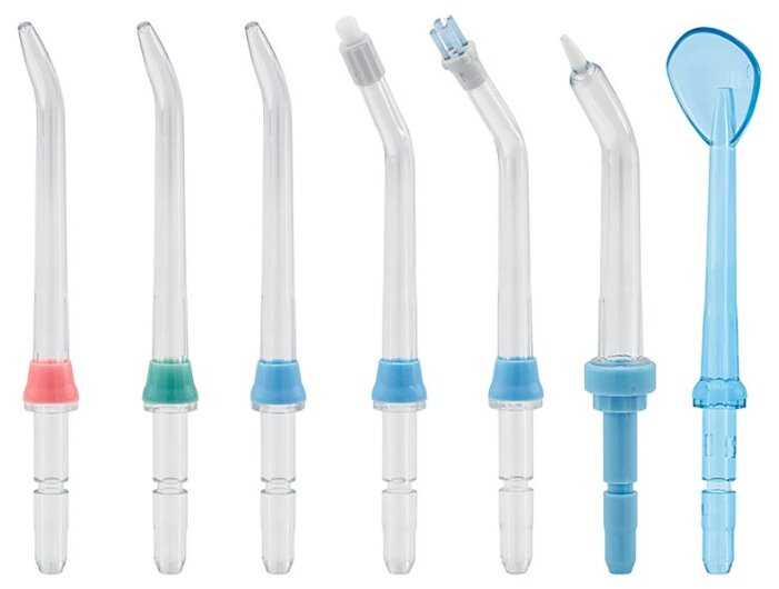 - Насадка для языка, брекетов, десневых карманов и имплантов расширяет функционал.