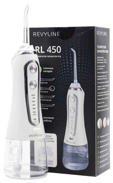 Свой первый ирригатор приобрёл по совету стоматолога после установки зубного импланта. Выбирал по отзывам, однако позже выяснилось, что это было ошибкой: с устройством шёл купон на 200 рублей за написание отзыва, вот все и ринулись их отрабатывать, нахваливая товар и ставя ему высокую оценку (и не стыдно продаваться за гроши?). В целом работой ирригатора я был доволен, мощности хватало в четвёртом, предпоследнем режиме (правда по мере разрядки аккумулятора напор воды снижался, то есть напряжение на помпе не стабилизировано, но я переходил на последний, пятый режим, таким образом компенсируя потерю в мощности). Вот только случайных нажатий кнопок избегать не удавалось, они очень непродуманно расположены на корпусе. Также не рискнул снимать резервуар и наливал воду через лючок сбоку, поскольку, на мой взгляд, крепление резервуара хлипкое и лучше лишний раз его не отсоединять. Но с этим можно было бы мериться, не сломайся ирригатор спустя два месяца бережной эксплуатации. Стал выяснять, в чём может быть причина? И вот что удалось найти. В технических характеристиках указано, что класс влагозащиты устройства - IPX7: защита при частичном или кратковременном погружении в воду на глубину до 1 метра. Так вот, всё это чепуха. Поищите в Интернете видео с разборкой ирригатора, в котором можно посмотреть его начинку. Плата управления находится за пластиковыми кнопками, которые болтаются на корпусе и никакой влагозащиты не имеют! Корпус состоит их двух частей, которые тоже не имеют герметизации и легко пропускают воду. Поэтому когда вы пользуетесь ирригатором, то вся вода изо рта льётся на него потоком и проникает внутрь корпуса, заливая элементы управления, что весьма быстро выводит их из строя. Надо отметить, что это проблема всех портативных ирригаторов, как китайских, так и немногочисленных брэндовых (B.Well, Braun Oral-B, Panasonic). Если почитать правдивые, а не купленные отзывы владельцев, то все жалуются на недолговечность изделий, причина которой почти во всех случаях одна: проникновение влаги внутрь устройства. Не понимаю, в чём такая сложность спрятать органы управления и помпу в герметичный отсек внутри прибора, но факт ненадёжности конструкции данного вида устройств налицо. Поэтому если жилищные условия позволяют вам установить в ванной комнате стационарный ирригатор, то не связывайтесь с портативными, они все ненадёжны. И ещё. Посмотрите в Интернете ирригаторы Googy и h2ofloss HF-6 – это клоны ирригатора Revyline RL 450. Отличия от последнего у них только в конструкции и объёме резервуара, а так же в цене: их стоимость 2000…2500 рублей, что в два раза меньше стоимости Revyline. Я сдал вышедший из строя ирригатор по гарантии (спасибо, что в сервисном центре быстро и без проблем одобрили возврат средств) и рекомендовать его к покупке не могу. До тех пор, пока заявленные параметры влагозащиты не доведут до реального класса IPX7, надёжность устройства останется на крайне низком уровне.