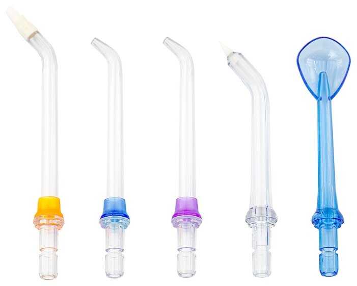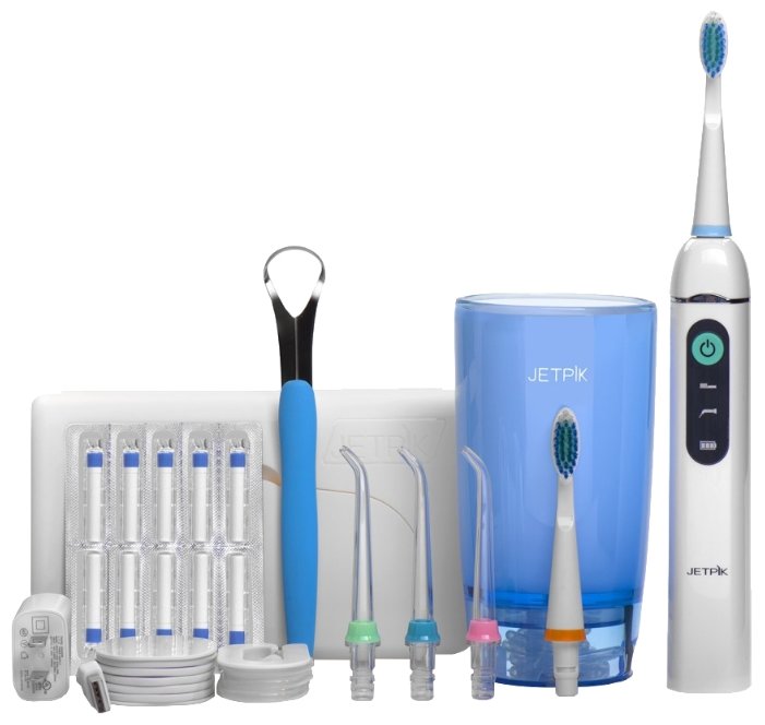 - В набор входят 5 насадок: 2 стандартные, ортодонтическая, пародонтологическая и для чистки языка.