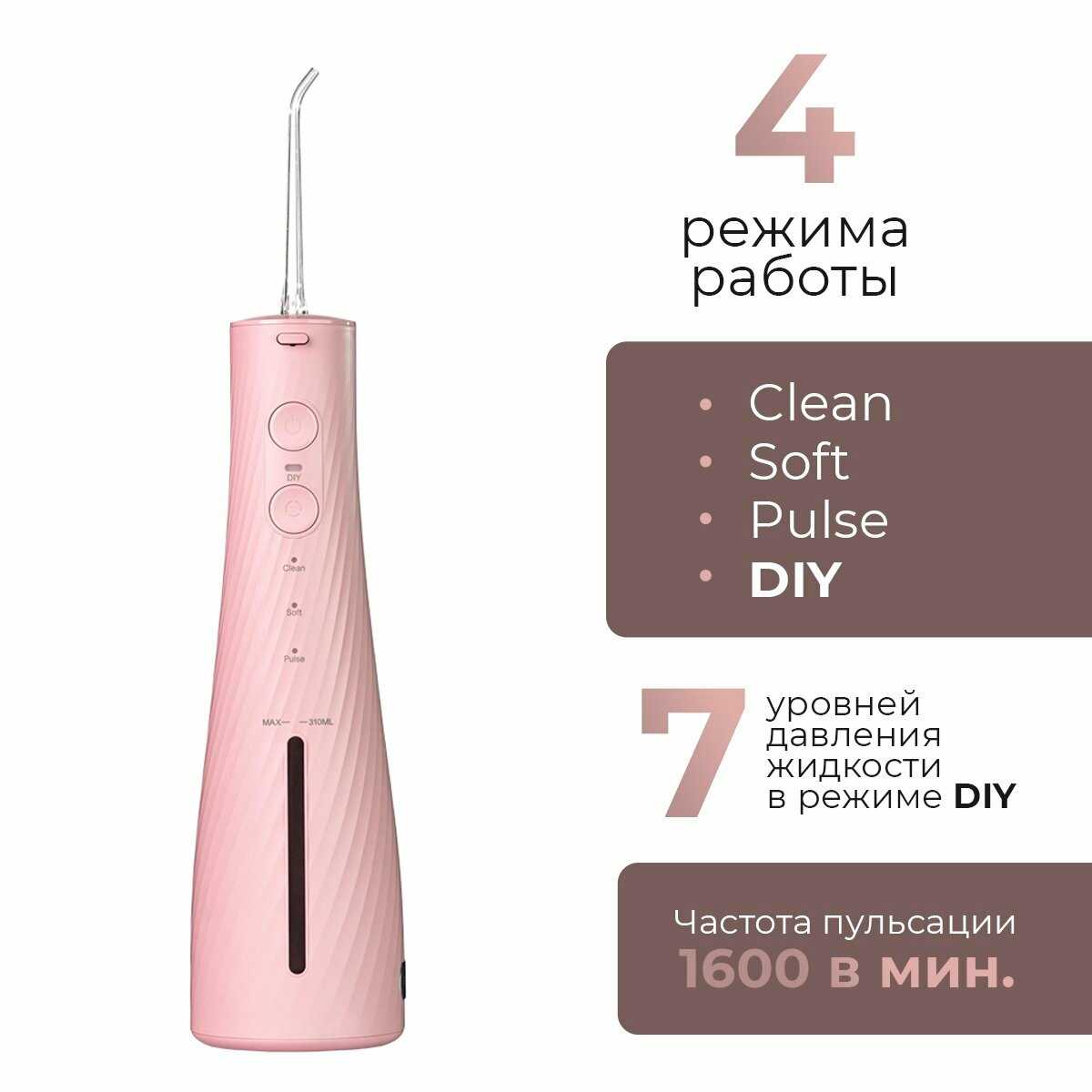- + Очень крутой ирригатор. Сам легкий, цвет изумительный, в руках очень приятно держать. Большой объем бака, семь уровней давления🔥 четыре режима работы. Также его можно разобрать и промыть