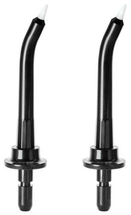 - + более качественно сделаны, чем те что шли в базовом комплекте, есть резиновый наконечник, который направляет струю, и при этом не травмирует десна и глубоко проникает между зубов
