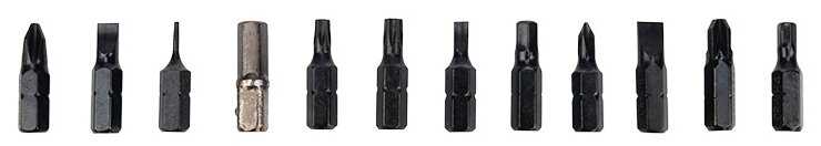 | Биты подробно : | шестигранная звезда - T5 T6 T10 T15 T20 T25 T30, шестигранник - H3 H4 H5 H6, крестовая - PZ2 PZ3 крестовая - PH0 PH1 PH2, шлицевая - SL3 SL5 SL6, Tri-Wing (трехлистник) - Y2 Y3, треугольник 2.3, U6.0 |